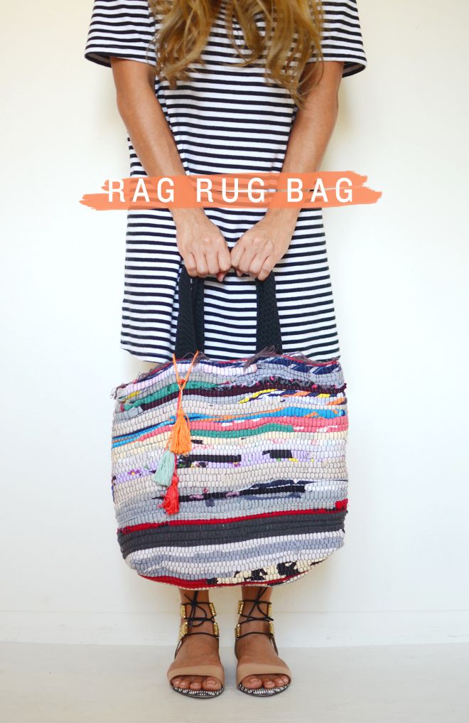 Rag Rug Bag Supplies: Rag rug 1 yard of braided fabric, cut into two 16″ piece…