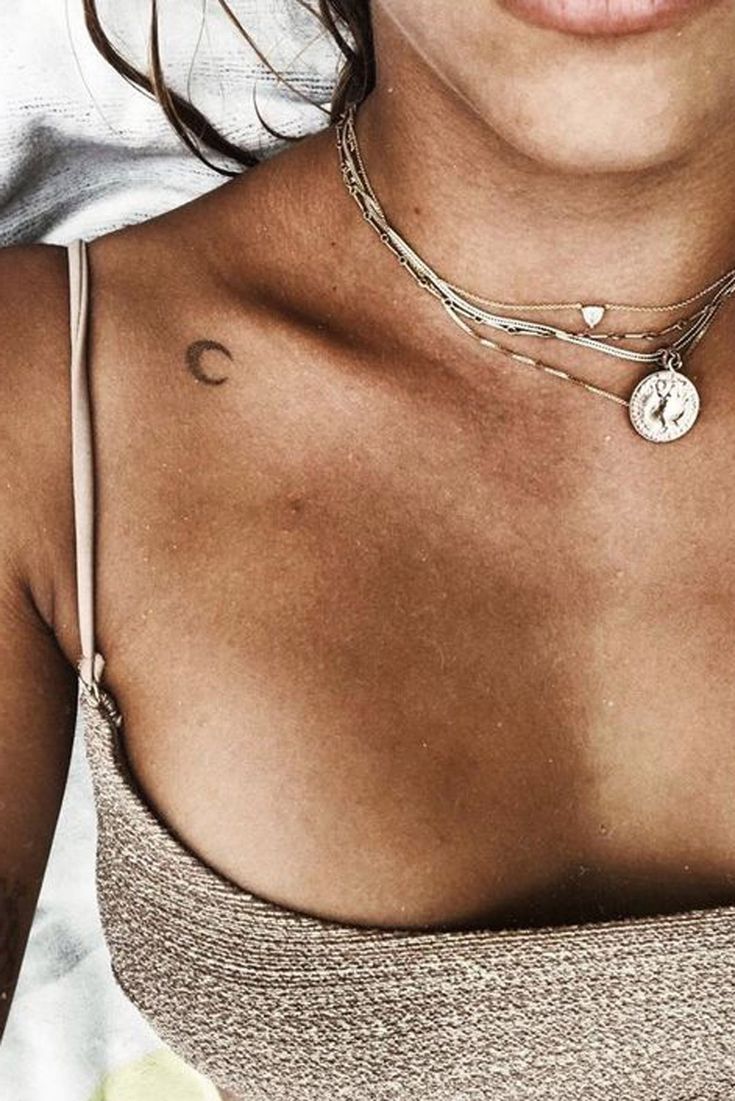 Small Moon Shoulder Tattoo Ideas for Teen Girls – Minimalist Tiny Crescent Chest…