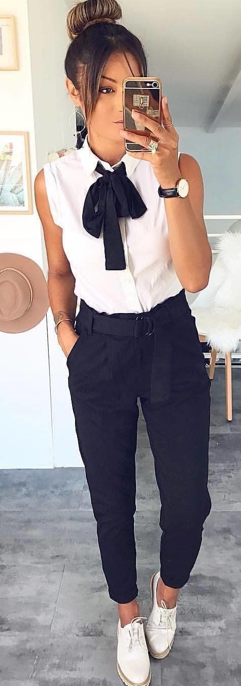 Shoes #spring #outfits woman wearing white button-up shirt with bow, black pants, and … By Karolina Misev On Mar 23, 2018 0 Share #spring #outfits woman wearing white button-up shirt with bow, black pants, and pair of white low-top shoes. Pic by @high_5_to_fashion Source by daypretty81 BlackbowbuttonupOutfitspantsshirtspringwearing 0 Share
